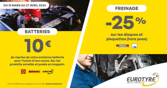 Venez profiter de nos offres sur l’entretien de votre véhicule directement en magasin ou sur notre site Eurotyre ! A […]